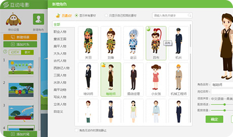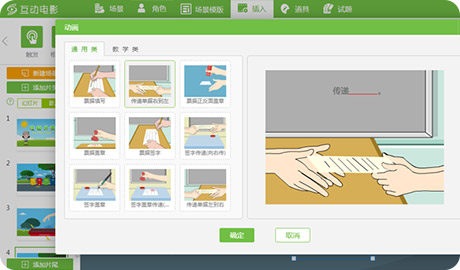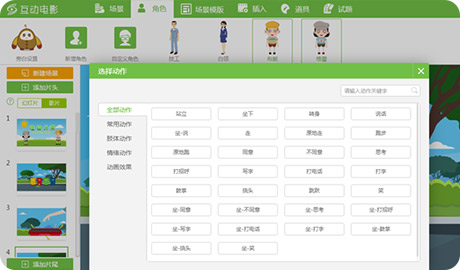 用户可为不同人物赋予多样的动作、姿势、表情,声情并茂展示丰富人物活动,用故事呈现教学内容,课件也能做成大片。